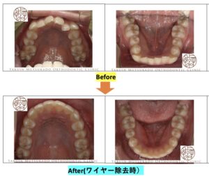 患者様が、歯磨きを頑張っていただき、また月に1回は必ず受診していただいたこともあり、予定治療期間内に、きれいな噛み合わせを獲得することができました。