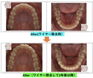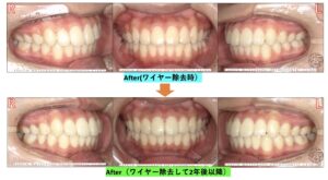 治療前後の写真です↓↓(黄色:治療前、青色:装置除去後、緑色:装置除去後2年以降)