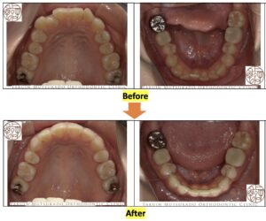動的治療期間は約2年3ヶ月でした。歯が矯正移動するときに障害となる硬い骨があり、時間がかかりそうだと説明していましたが、ゴム掛けや定期的な通院を頑張っていただいたおかげで治療期間内に終わらせることができました。
