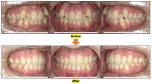 動的治療期間は約2年4ヶ月でした。定期的な通院や歯磨きを頑張っていただいたおかげで治療期間内に終わらせることができました。