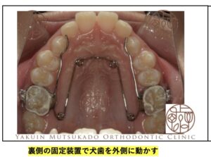 上顎犬歯を裏側の固定装置で外側に動かします↓↓