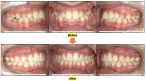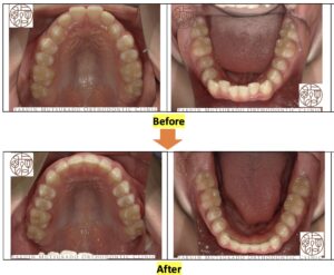 動的治療期間は約2年4ヶ月でした。この年齢での矯正は、成長期の矯正で治療期間が長くなりやすいですが、定期的な通院を頑張っていただいたおかげで治療期間内に終わらせることができました。